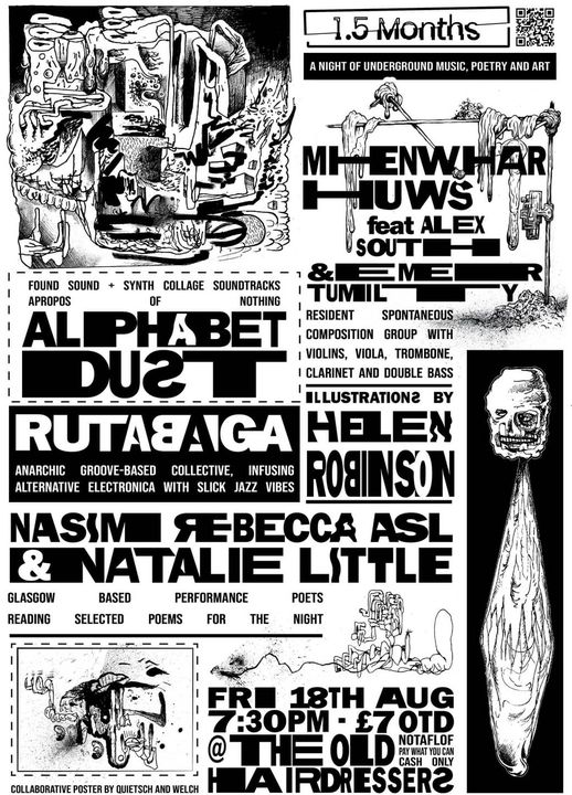 We’re playing live at “1.5 months”, The old Hairdressers, Glasgow, Aug 18th